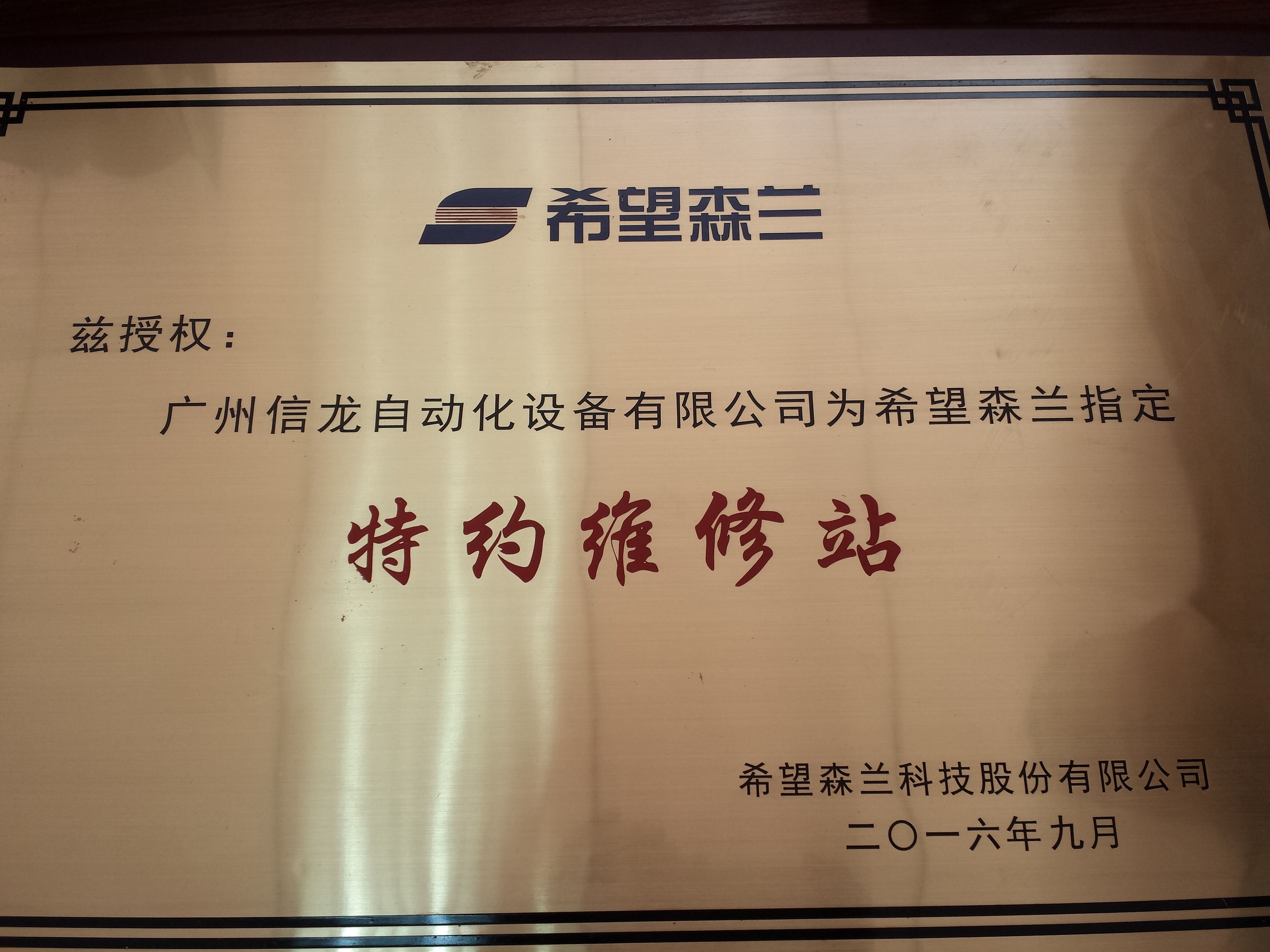 • 【2016-09-16】熱烈祝賀我司成為希望森蘭指定特約維修站